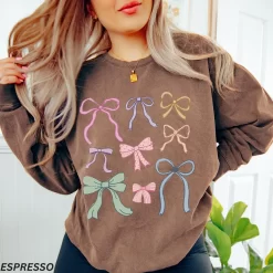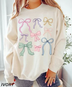 Women’s Bow Print Sweatshirt Long Sleeve Round Neck Loose Casual Pullover Tops Oversized Fall Hoodies