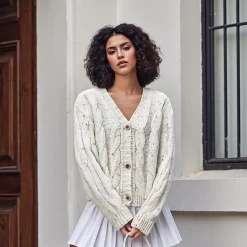 Women Button up Sweaters Casual Contrast Color Cable Long Sleeves Knit Cardigans Warm Fall Knitwear for Streetwear
